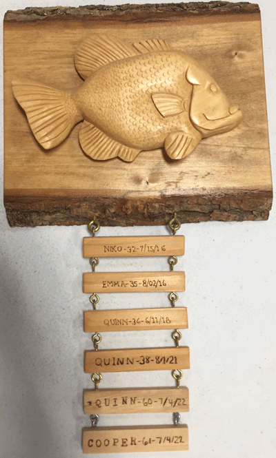 grandchildrens’ record bluegill catches at their summer lake cabin.