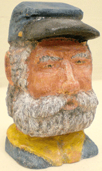 A picture of the finished Indian head Ray Olson Salem Barker explains how he buffs carvings
