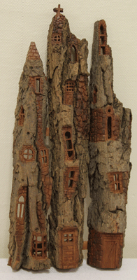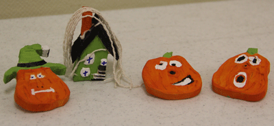 Arne Larsen carved a miniature Halloween house and three pumpkin pins.