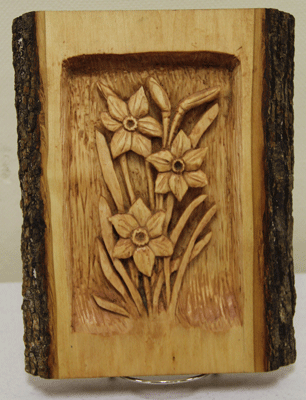 Dave Meyer carved two relief carvings out of basswood, one of Daffodils and a Calla Lilly