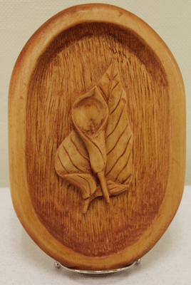 Jack Basford did a leaf carving out of Butternut he had laying around.