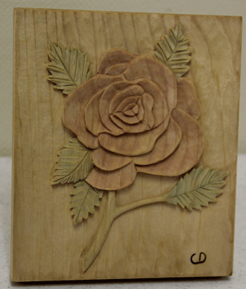 Chuck Drewes showed a nice Rose relief carving he made for a Breast Cancer awareness raffle.