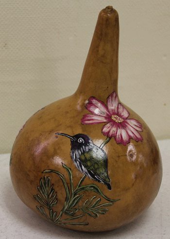 Gordy Moscinski had a couple of nice gourds he and his wife had finished.