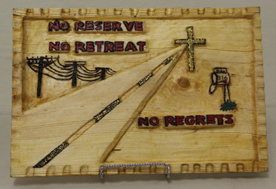 Richard Prutz did a neat rolling pin and a Plaque of a Highway with “No Regrets”