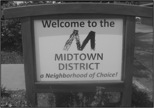 The Zion Development Organization placed this sign at the entranced of Seventh Street having the letter "M" carved by Roger Benedict. The sign material is plastic that had a tough resistance to a carving tool. The carved letter is a foot high. Nice job Roger!