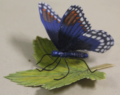 Gordy Moscinski displayed a butterfly and a leaf, both