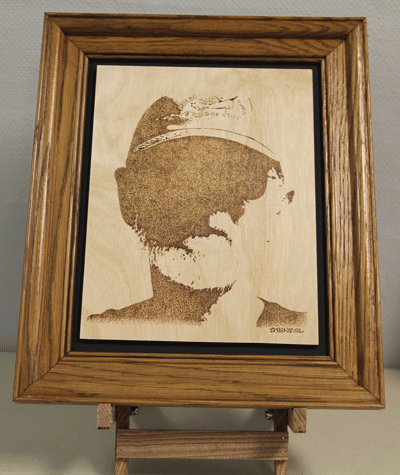 Tony Devita brought a wood burning of a dog which he also burned into a