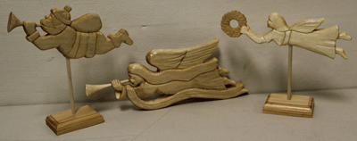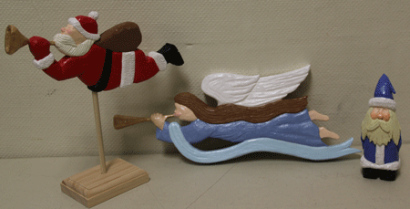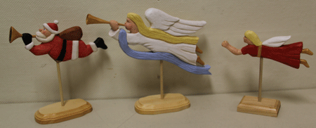Carrie Lay presented her angel and Santa from basswood.