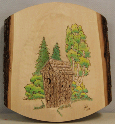 Both the butterfly and leaf were carved and burned in walnut veneer.