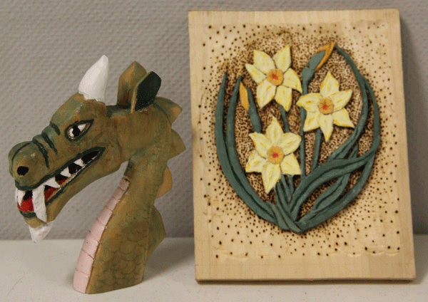 years. My husband taught me how to chip carve. One chip at a time. Also, I