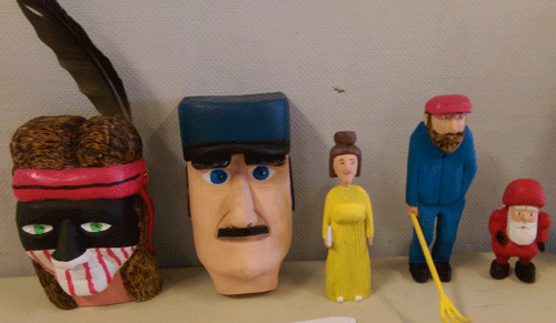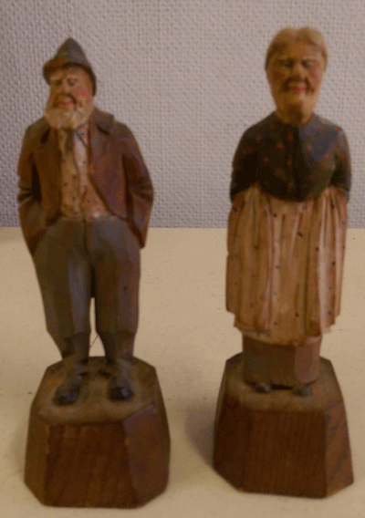 fishing friends; also a pair of miniature figures carved in 1908 which he