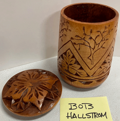 beautiful jar and lid which he is donating to our Christmas Party raffle.