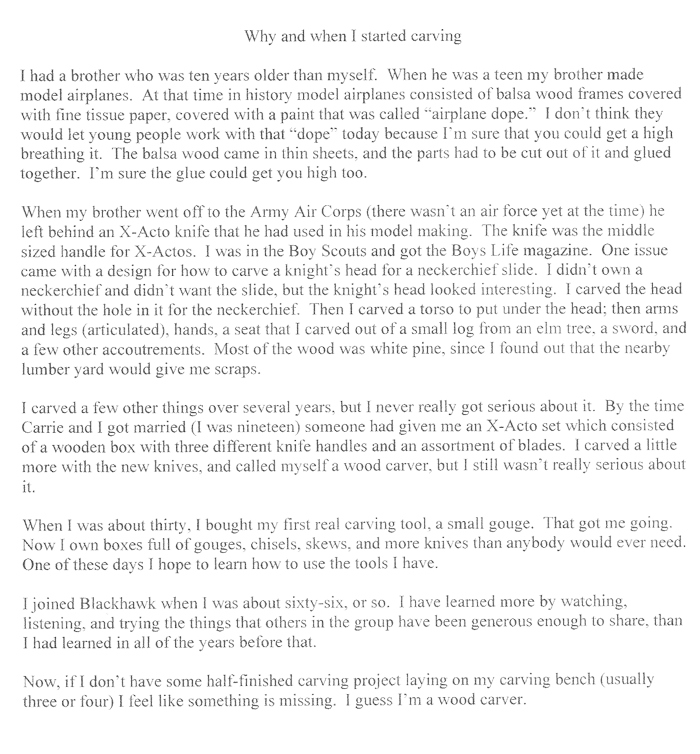 got started as a woodcarver