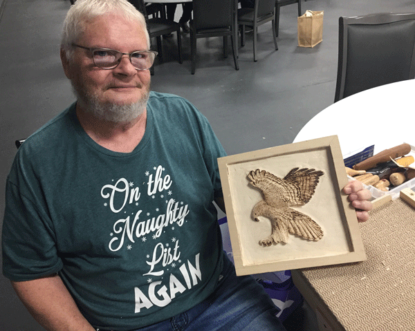 carving of an eagle which will be a gift to a friend next week.